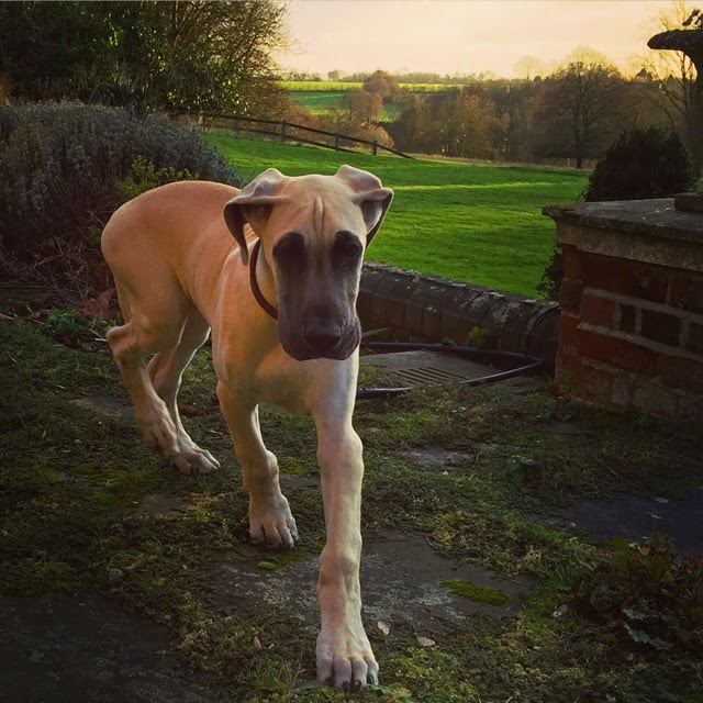 | Cat and the fiddle in a pea green (inside) boat with an owl flying to meet him. A whippet runs along the river to join the boat. Hard to see but fish leap from the river. |